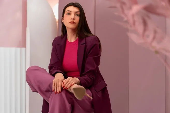 - Можно использовать яркие элементы в одежде или мебели: пиджак, шарф, детали интерьера и т.д.